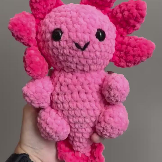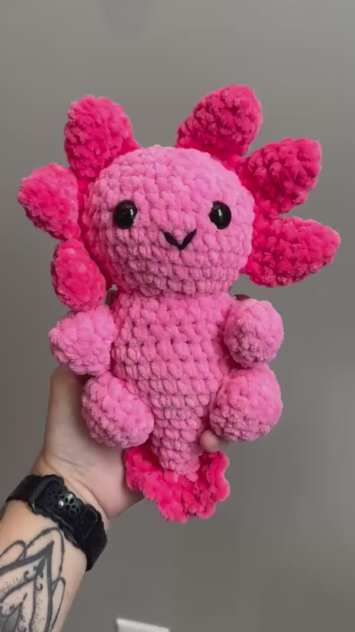 Meet your new underwater bestie — a hand stitched pink axolotl crochet plushie that’s as adorable as it is huggable! 🩷 Each one is lovingly crocheted by hand, giving it the sweetest smile and little frilly gills that make it truly unique.